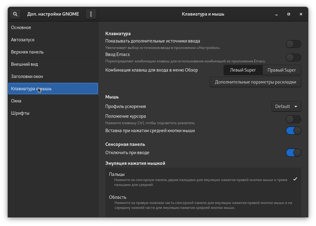 # Доп. настройки GNOME